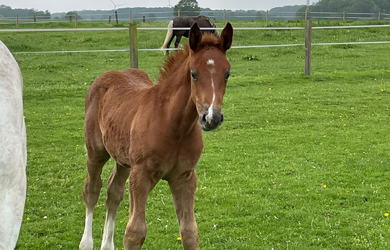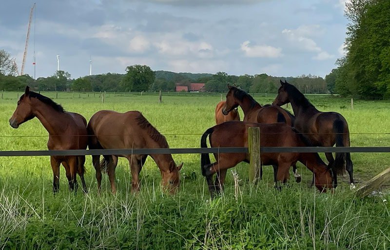 Dabei legen wir großen Wert auf die Gruppenhaltung, um die soziale Interaktion der Jungpferde zu stärken und auf ausreichenden Auslauf - und das zu jeder Jahreszeit.
